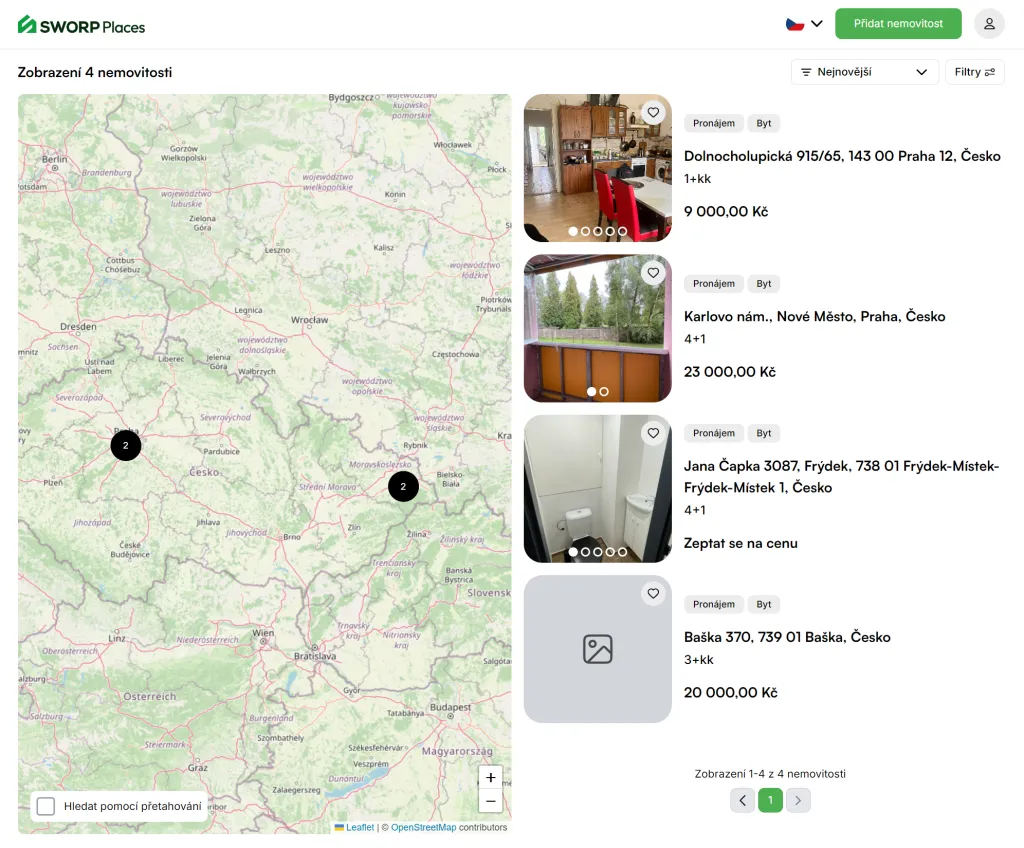 Své nemovitosti spravujde efektivně ve službe SWORP Rent a nabídněte k prodeji nebo pronájmu na 1 kliknutí.